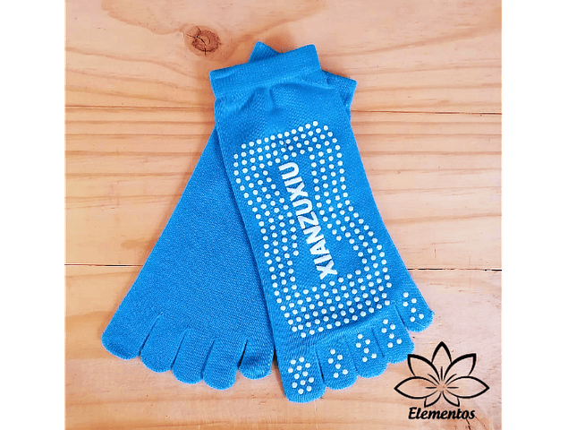 Calcetas de Yoga con Antideslizante | Algodón | Color Calipso | con dedos | Sin costura en talón | Talla única