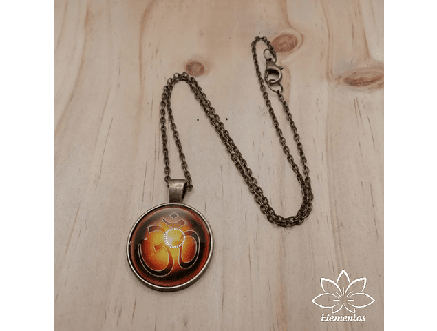 Colgante OM Fuego | Cristal Cabuchón y Aleación de Zinc | Incluye cadena 50 cms.