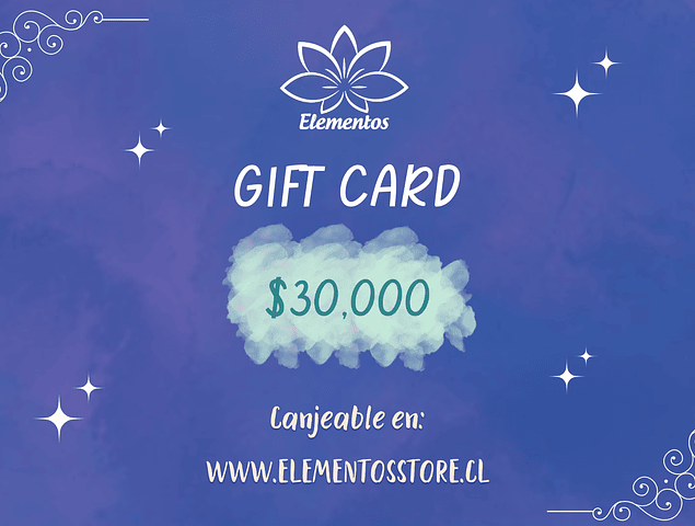 Giftcard válida por $30.000 para realizar compras en nuestra tienda. Se debe utilizar en una única compra. Una vez adquirida, te llegará un mail con la giftcard junto al código de descuento para hacerla efectiva y tendrá una vigencia de 90 días.