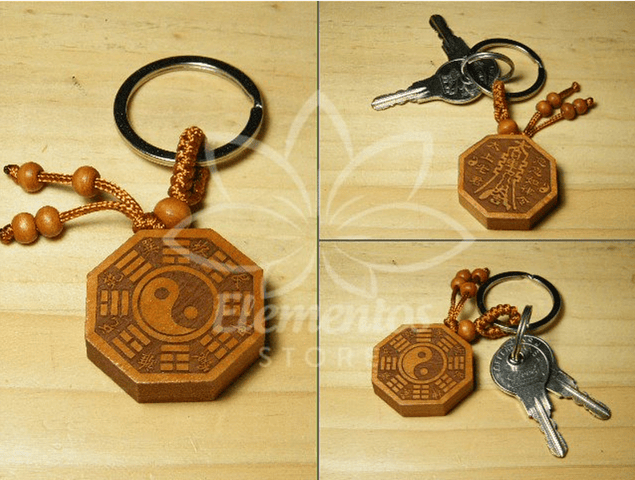 Llavero Yin Yang tallado | Madera de Tulsi | Hecho en India