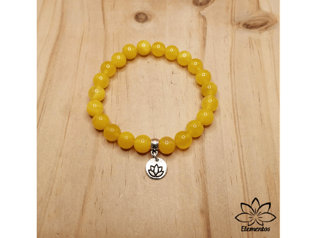 Una pulsera que despierta tu fuego interno y te recuerda de lo que eres capaz. Las ágatas amarillas iluminan tu confianza, nutren tu autoestima y fortalecen tu voluntad. El dije de flor de loto invita a florecer desde tu centro, recordándote que cada capa que dejas caer te lleva más cerca de tu fuerza auténtica.