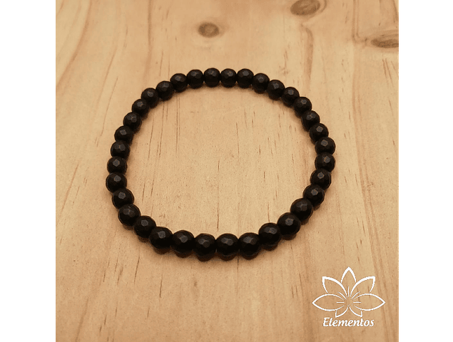 Pulsera Protección | Diseño para Hombre (negra completa) | Turmalina | Elasticada | Cuentas de 6 mm.
